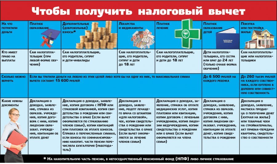 Ознакомьтесь с таблицей, демонстрирующей варианты налоговых вычетов: